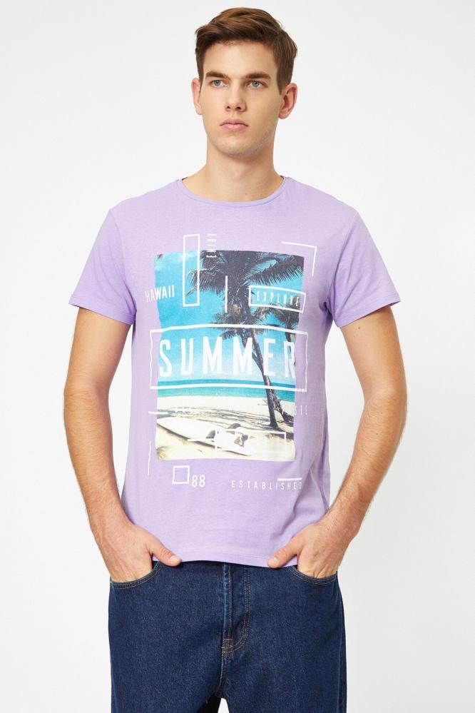 تيشيرت رجالي سبور ستايل صيفي يأتي بلون بنفسجي وبطبعة انيقة بالمنتصف , هذا التيشيرت الصيفي يأتي بقماش قطن 100%